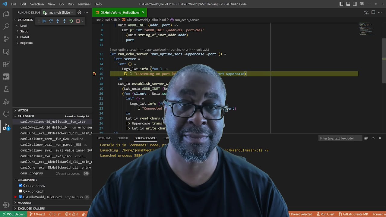 Overall, I understand that I’ll need to compile ocaml on my dev machine if I want to get break points within vscode.
